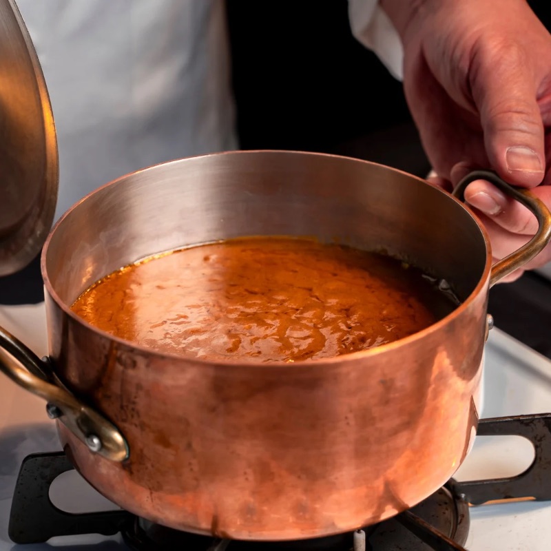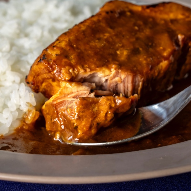 一度オーブンでローストしてから煮込んでいるので、煮崩れしにくく、香ばしい仕上がりとなっています。脂身のとろっとした食感とスパイシーなルーをお楽しみください。